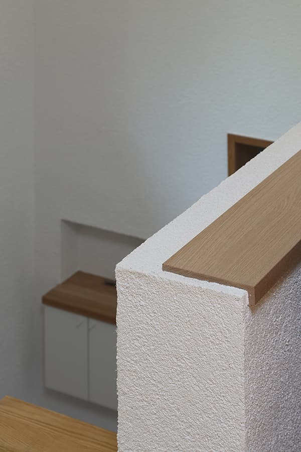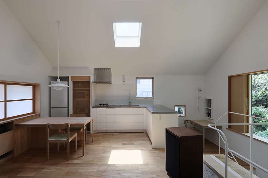 完成した住まいには光と影、そして身体感覚から導かれる様々な寸法の関係性によって「豊かな居場所」があちこちに散りばめられている。そうした場が立体的に繋がりをもつことで「小さな家」でも面積以上の広がりが感じられる住まいとなった。さらに緑と音楽の共鳴によって「この場所にしかない豊かさ」を獲得することができた。