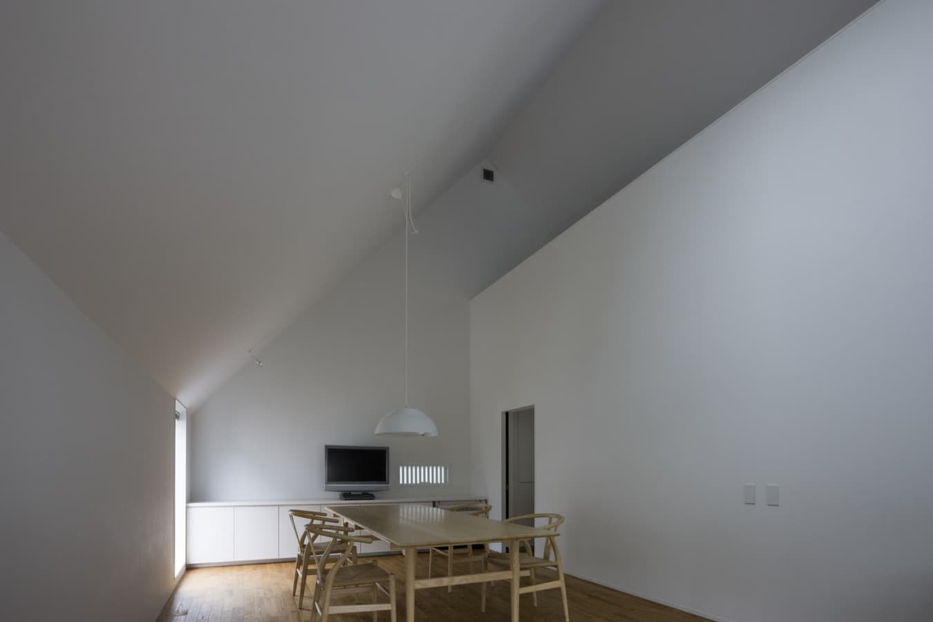 文京区の古くからの住宅地に建つ住宅です。敷地が約24坪、建築面積が約14坪。住まい手は30代のご夫婦と二人の子供達。ご夫婦共に仕事をされているので、親子のコミュニケーションの在り方がテーマです。構成としては1階をコンクリートで強固につくり玄関、洗面浴室と主寝室、外部テラス等を設け、2階と3階は大きなワンルーム空間としました。