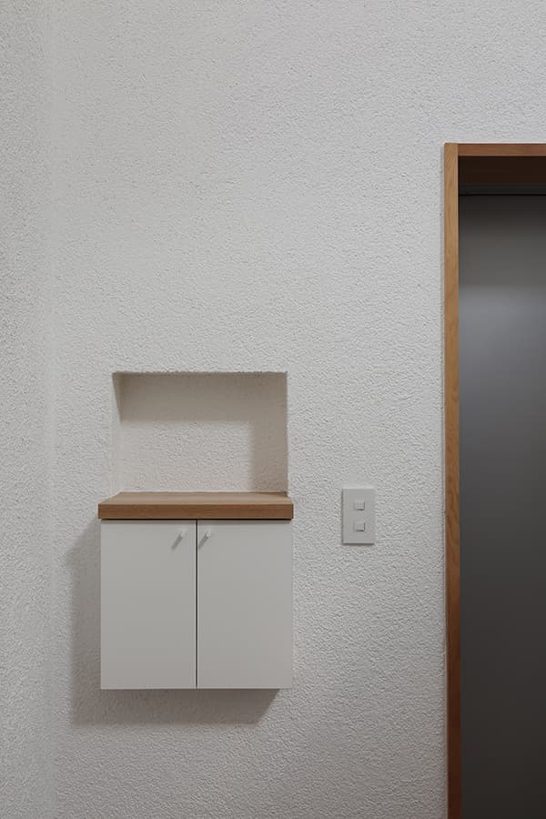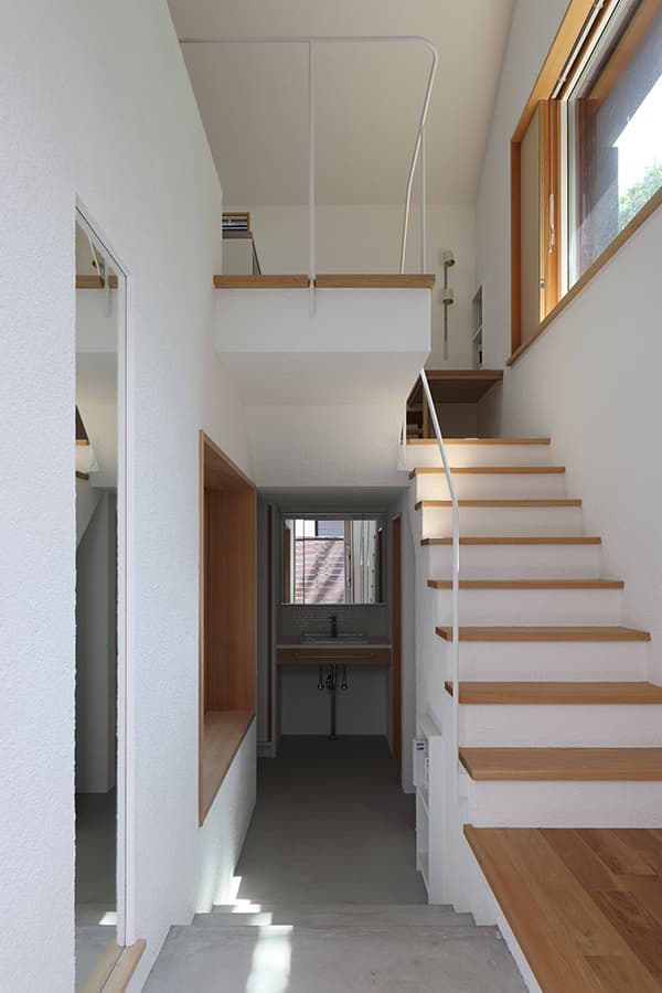 完成した住まいには光と影、そして身体感覚から導かれる様々な寸法の関係性によって「豊かな居場所」があちこちに散りばめられている。そうした場が立体的に繋がりをもつことで「小さな家」でも面積以上の広がりが感じられる住まいとなった。さらに緑と音楽の共鳴によって「この場所にしかない豊かさ」を獲得することができた。