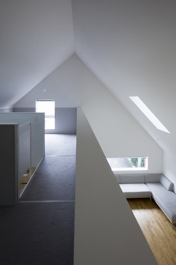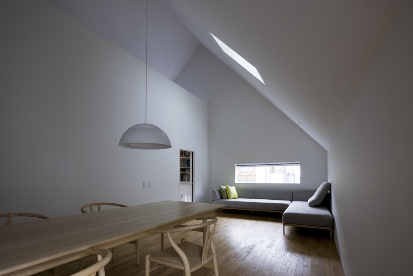 文京区の古くからの住宅地に建つ住宅です。敷地が約24坪、建築面積が約14坪。住まい手は30代のご夫婦と二人の子供達。ご夫婦共に仕事をされているので、親子のコミュニケーションの在り方がテーマです。構成としては1階をコンクリートで強固につくり玄関、洗面浴室と主寝室、外部テラス等を設け、2階と3階は大きなワンルーム空間としました。